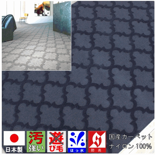 カーペット 10畳 ダイニング リビング 撥水 はっ水 絨毯 じゅうたん 防炎 防ダニ 送料無料 ナイロン グレー ネイビー ダマスク モダン 【品名 マジョレル】10畳中敷き 300×400cm